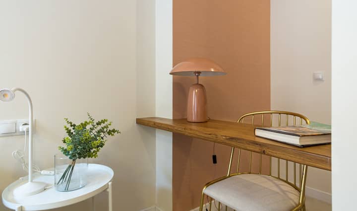 Izba s Wi-Fi, ktorá je vhodná na prácu.