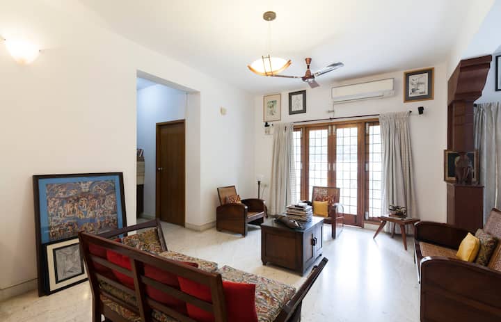 Central Apt @RA Puram – izba so zeleným balkónom