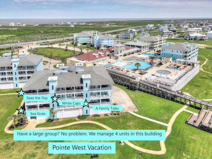 Pointe West je súkromná rezortná komunita na západnom cípe ostrova Galveston, ktorý sa nachádza približne 30 minút od The Strand a ďalších skvelých atrakcií Galvestonu. Budete mať exkluzívny prístup na našu pláž, ktorá je čistá a pravidelne upravovaná a ponúka vám ideálne miesto na oddych a oddych, ďaleko od davov.