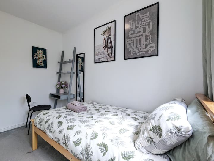 Izba s Wi-Fi, ktorá je vhodná na prácu.