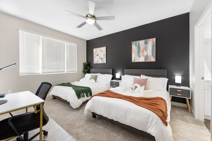 Ponorte sa do pohodlia a krásy Desert Oasis Retreat, úžasného bývania v luxusnej, pokojnej komunite v Scottsdale v Arizone. Tento luxusný objekt ponúka dve spálne, dve kúpeľne a ubytuje až osem hostí, vďaka čomu je ideálny pre rodiny, priateľov alebo obchodných cestujúcich, ktorí hľadajú pokojný, ale dobrodružný pobyt. Toto bývanie obklopené úchvatným výhľadom na púšť, bazén a rezort je ideálnou základňou na objavovanie prírodných krás Arizony a pulzujúceho mestského života.