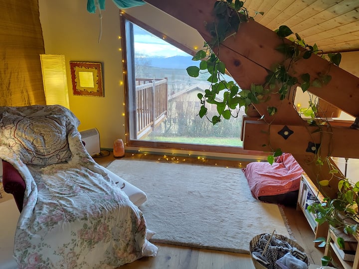 Spálňa s krásnym výhľadom na Mt Blanc!