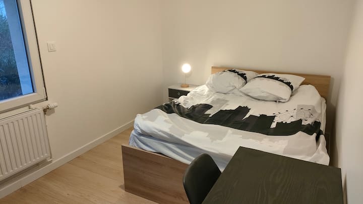 Izba s Wi-Fi, ktorá je vhodná na prácu.