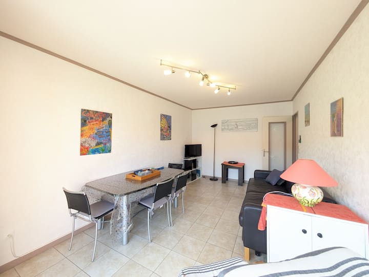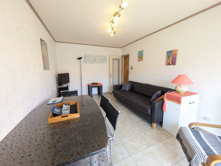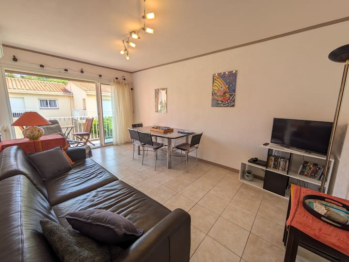 Pláž 50 m, parkovanie, klimatizácia a balkón – Les Batteries