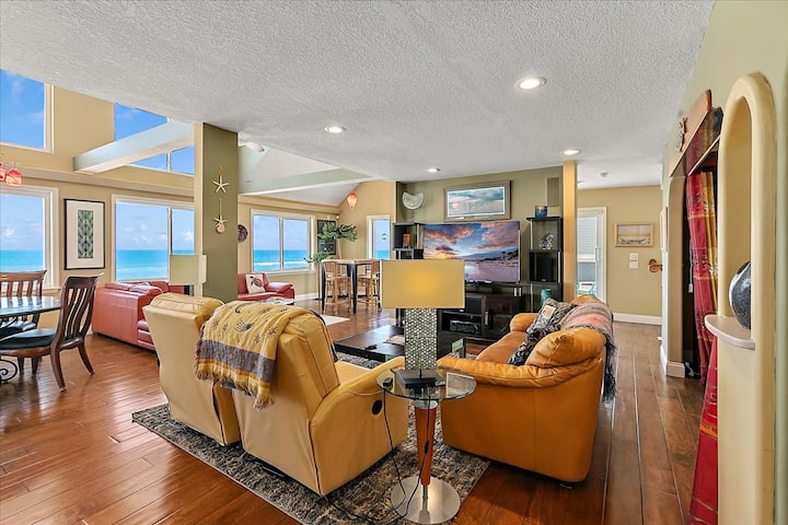Nechajte svoje starosti pri dverách a pripravte sa na oddych vo chvíli, keď vstúpite do Seaside Sanctuary. Táto plážová oáza s 3 spálňami a 3,5 kúpeľňami ponúka relaxačnú atmosféru a je ideálna na pokojný pobyt na pláži ako žiadna iná. Teplé odtiene piesku, šalvie a hliny zaplňujú dom spolu s priestrannými oknami, ktoré umožňujú panoramatický výhľad na oceán odkiaľkoľvek v dome. S otvoreným pôdorysom prechádza 3-poschodové bývanie hladko z jednej izby do druhej, čo umožňuje skutočne blízky zážitok pre vás a vašich hostí. Predné dvere vás vedú po schodisku, ktoré sa otvára do veľkého obývacieho priestoru a vítajú priateľov a rodinu. Keď vstúpite do obývacej izby, všimnete si 2 veľké priestory na posedenie – jedno pred multimediálnym centrom a druhé vedľa okien, ktoré umožňujú skutočne úchvatný výhľad. V obytnom priestore je tiež formálny jedálenský stôl pre 6 osôb a vysoký stôl pre 4 osoby. K dispozícii sú dve bežné spálne a tretia izba, ktorá môže slúžiť ako spálňa, plus otvorené podkrovie . Knižnica výklenku a obytný priestor prúdia do priestrannej plne vybavenej kuchyne a kúpeľne s umývadlom. Tento jedinečný otvorený pôdorys evokuje pocit komunity, ale tiež poskytuje dostatok priestoru na súkromie.