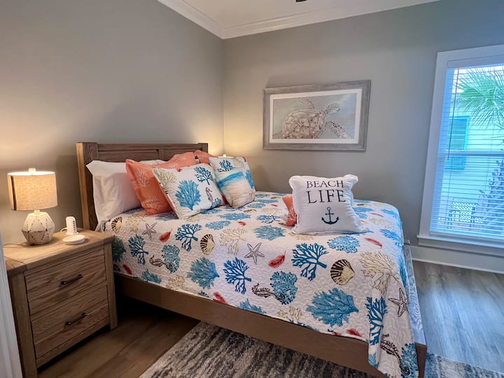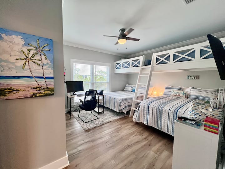 Indulge in a customized kitchen equipped with everything you need to cook and experiment with new recipes. Be sure to taste the delectable local dishes during your stay. The exquisite master bedroom includes a roomy king-sized bed and a generously sized suite bathroom with a large shower and tub. Relax with candles and bath bombs while the kids explore nearby trails. The sofa and dining table provide plenty of seating for everyone. Let the kids have a blast in the bunk room while you unwind or cook - it's so inviting they'll have no trouble falling asleep after their long day. Two queen size beds at the bottom which are both extremely comfortable and 2 twins on top. 3rd room has a lovely Queen bed . Bring the extended family, they can all fit here without the outrages prices. Kids can adventure outside, look for those little crabs running all over the neighborhood. Watch out for those bunnies weaving in and out of everywhere. They are super fast and you won't be able to catch them. The zero depth pool is just at the end of street on the slight bend, if you have little ones this is just perfect. This home is close to both pools and just moments from the Beach. Parking is right in front of the cottage. We are just over the bridge . Pretty much this home got one of the best spots. But don’t tell anyone. Lots of extras given with this home to make it a wonderful experience! Our goal is for you to leave here knowing this was the best time of your life!