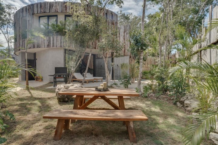 Vila sa nachádza v bezpečnom a tichom uzavretom komplexe s 24-hodinovou ostrahou a ponúka moderné pohodlie obklopené pokojom džungle. Len pár minút od centra mesta, úžasných reštaurácií a krásnych pláží v Tulume – je to dokonalá kombinácia súkromia, štýlu a polohy.