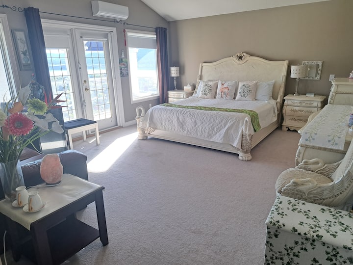 Hlavná spálňa s výhľadom na jazero, vlastná kúpeľňa s balkónom