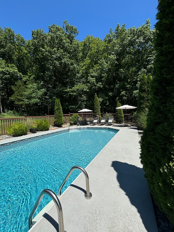 Vitajte v Hunts Retreat! Užite si ľahký prístup ku všetkému 15 míľ od Nashvillu, 2,5 míle od prístupu k jazeru, 1,5 míle od obchodov a stravovania. 4BR/6BD/2.5BA priestranná kuchyňa+jedálenský kút s posedením pre 8/žulové pracovné dosky/spotrebiče Whirlpool/plne zariadená na prípravu jedla. Veľká bonusová izba s pracovným priestorom. Obývacia izba s posedením a klavírom ideálna pre skladateľov piesní. Vychutnajte si rannú/popoludňajšiu kávu+čaj na prednej verande +hojdačku alebo na zadnej terase. Podzemný bazén otvorený od 1. mája do 1. októbra.