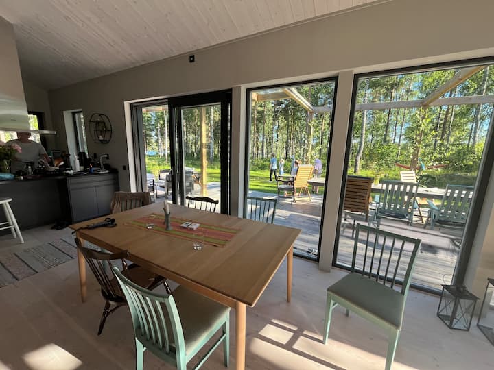 Veľké ubytovanie so spoločenskými priestormi, kde sa stretáva more a les