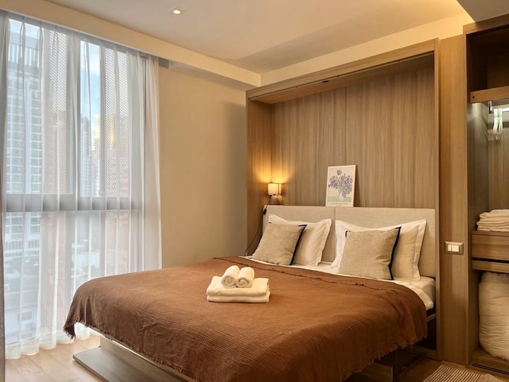 Tento apartmán sa nachádza na ulici Sukhumvit 31st Lane a môže sa v ňom ubytovať až 3 osoby. Je to do 15 minút chôdze od stanice BTS Asoke, stanice BTS Phrom Phong a stanice MRT Sukhumvit, takže sa môžete ľahko dostať na akékoľvek miesto v meste, kde chcete ísť. Je tiež výhodné prejsť sa doTerminal21, Emquatier, parku Benjasiri atď. Supermarket a ďalšie typy obchodov v okolí tejto oblasti.