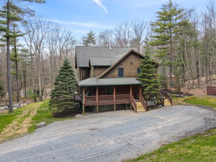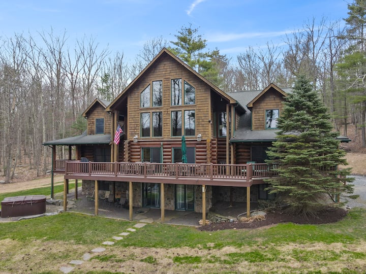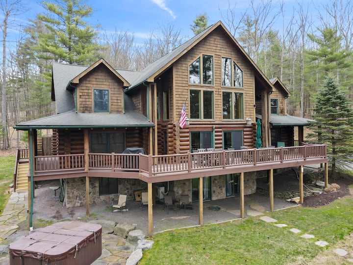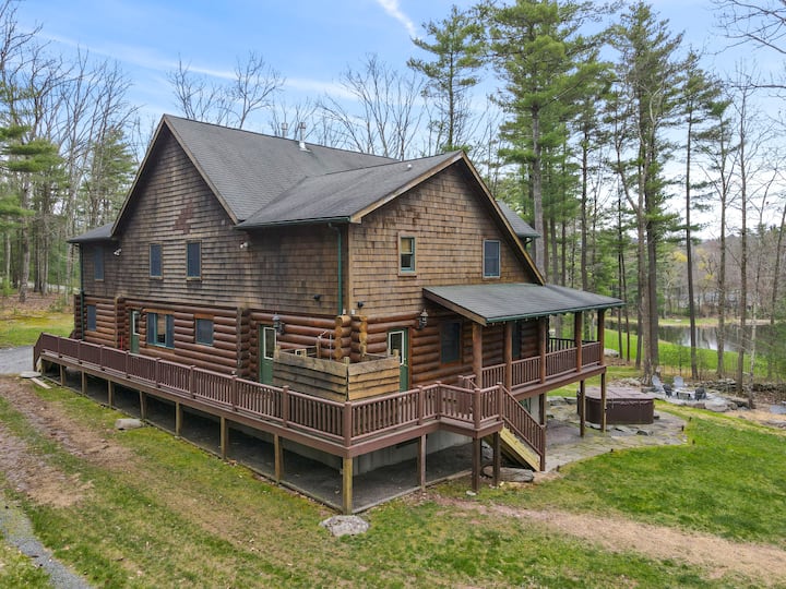 Drevený dom pri jazere Wallenpaupack so súkromným rybníkom