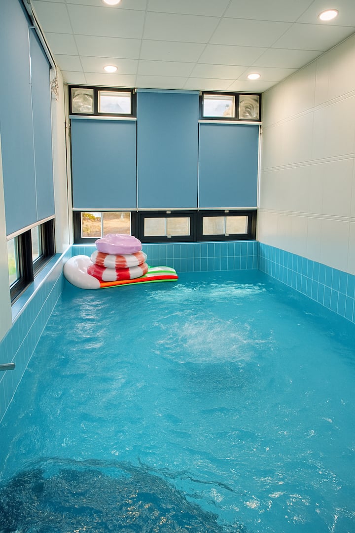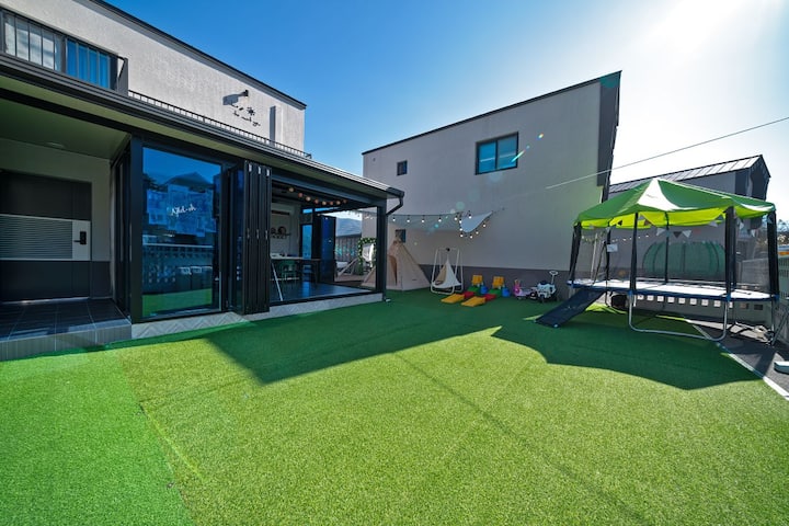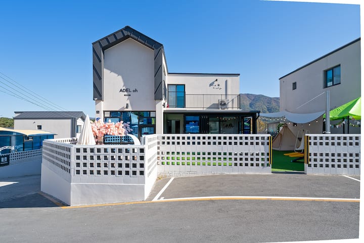 Gyeongju Adel O 10 minút autom od hlavných turistických atrakcií Dvojpodlažný dom Krytý bazén a šmykľavka Sauna, vnútorné BBQ