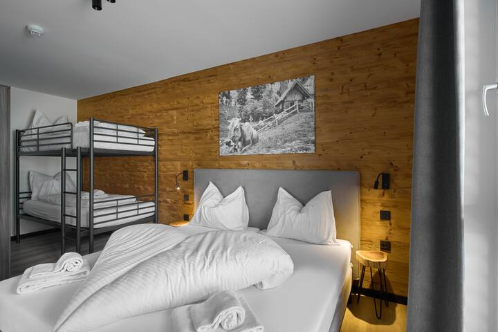 1 manželská posteľ, 1 poschodová posteľ