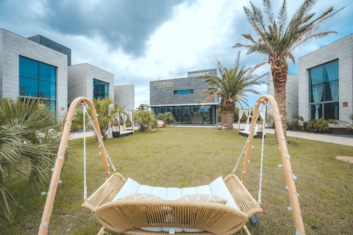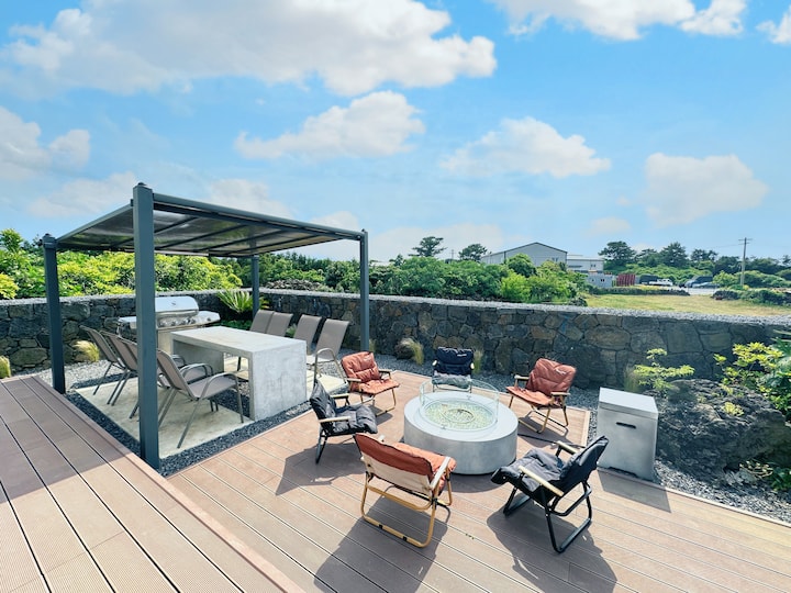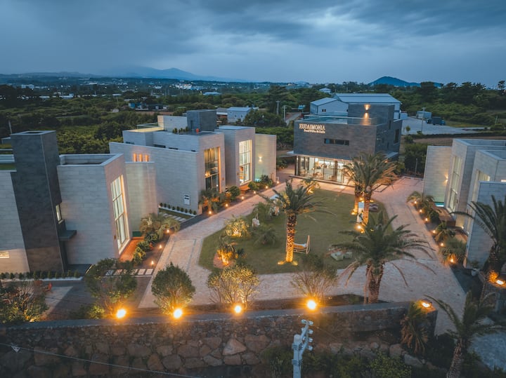 Welcome to EUDAIMONIA, a newly built private villa complex completed in 2024. Each of our 5 villas features a private pool, BBQ & fire pit, and unique luxurious design. Run by a Taiwanese-Korean couple, we offer free travel info in Chinese, English, and Korean. Enjoy a peaceful and unforgettable stay in Jeju with comfort and elegance.