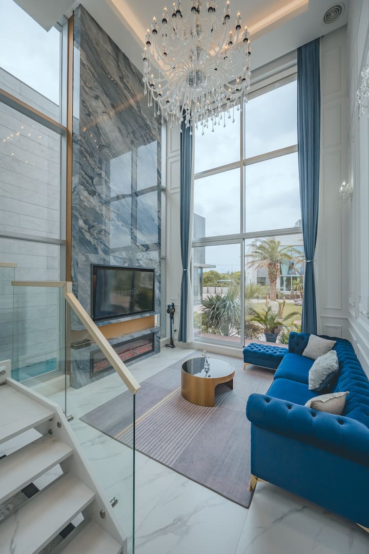 • Two-story villa with high ceilings and open structure