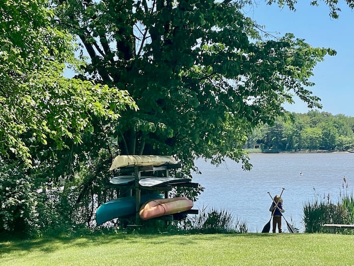 Obrovský objekt pri vode. Spálňa, jedáleň a obývacia izba s výhľadom na rieku. Prístup k rieke a prílivovej pláži. Kajak, SUP alebo kanoe. Užite si hry na dvore, vonkajšie stolovanie, hojdaciu sieť alebo ohnisko.