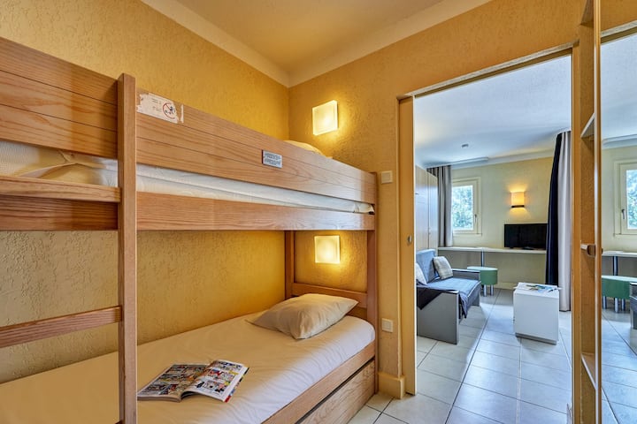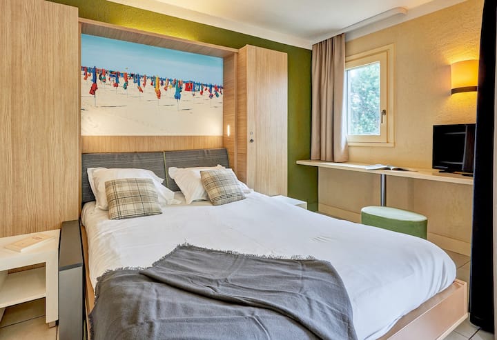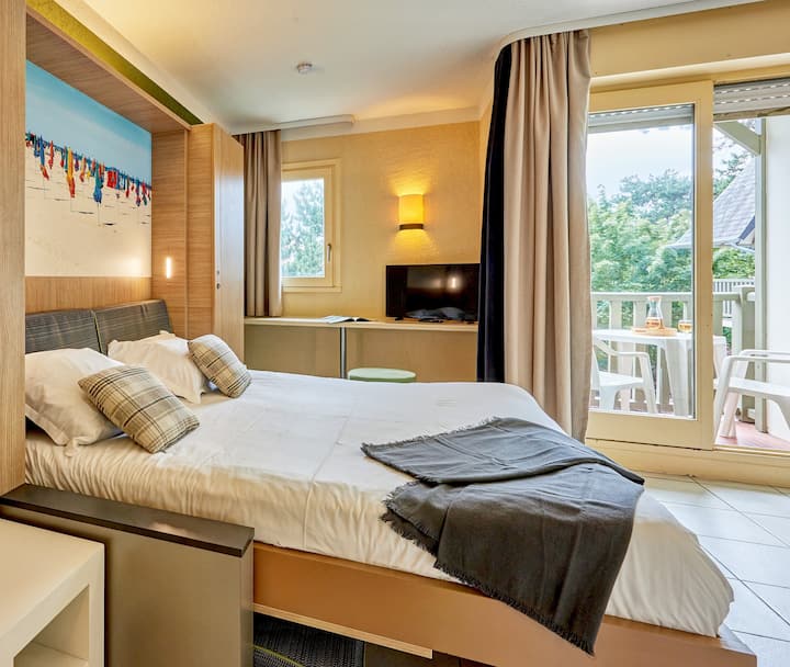 Táto rezidencia sa vyznačuje hrádzovou fasádou typickou pre Normandiu a jej upokojujúcou atmosférou. Ponúka apartmány s modernou a farebnou výzdobou, ideálne na pobyt pre 4 osoby. Ten malý príplatok? Balkón alebo terasa, kde si môžete vychutnať slnko.