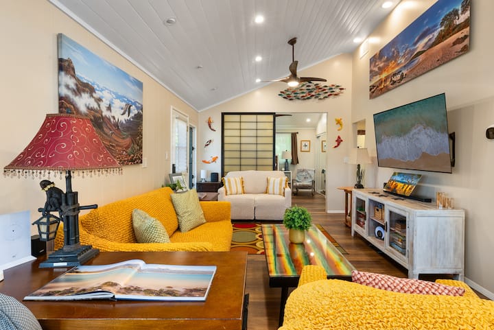 Aloha a vitajte v International Colony Club 22. Chata 22 je výnimočné miesto, kam sa cestovatelia stále vracajú a držia ju v tajnosti! S havajským štýlom v exteriéri a moderným šarmom vnútri. Naším cieľom je pohodlie a kvalita vášho pobytu na Maui. Po slnečnom dni na pláži si vychutnajte úľavu vďaka našej sviežej, chladnej centrálnej klimatizácii a zatemňovacím závesom, ktoré vytvoria útulnú a súkromnú atmosféru, keď potrebujete chladnú prestávku, alebo môžete otvoriť dvojité okná a dvere na verandu a nechať dovnútra preniknúť havajské slnko. K dispozícii je výhľad na oceán a bujná tropická krajina s kvetmi všade okolo vás. Hneď dole po ulici nájdete veľkolepý Kahekili Beach Park, alebo ako ho miestni nazývajú, Airport Beach. Urobte z neho pláž, pretože je ľahko dostupná s celodenným bezplatným parkovaním. Je to miestne posedenie s veľkou atmosférou a kilometrami piesku. Je to ideálne miesto na šnorchlovanie na útese, boogie boarding a plávanie. Plážová promenáda vedie k nákupom a stravovaniu vo Whalers Village a slávnych rezortoch Ka'anapali. Nemôžeme sa dočkať, až budete našimi hosťami v International Colony Club 22, rezervujeme si pobyt ešte dnes a vytvoríme si spomienky na Maui na celý život!