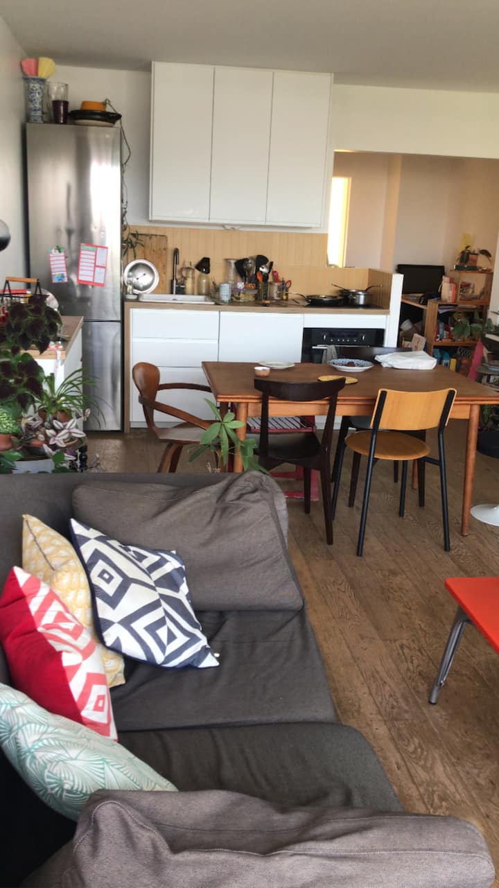Máme nádherný 5-izbový apartmán, svetlý a s priečnou ventiláciou. Dokonca aj v lete môžeme doma vytvoriť prúdenie vzduchu otvorením okien na oboch stranách. Výhľad je ničím nerušený a na jednej strane je výhľad na 3 parky a na druhej strane na záhradu. Môžete sa zobudiť na jemný spev vtákov.