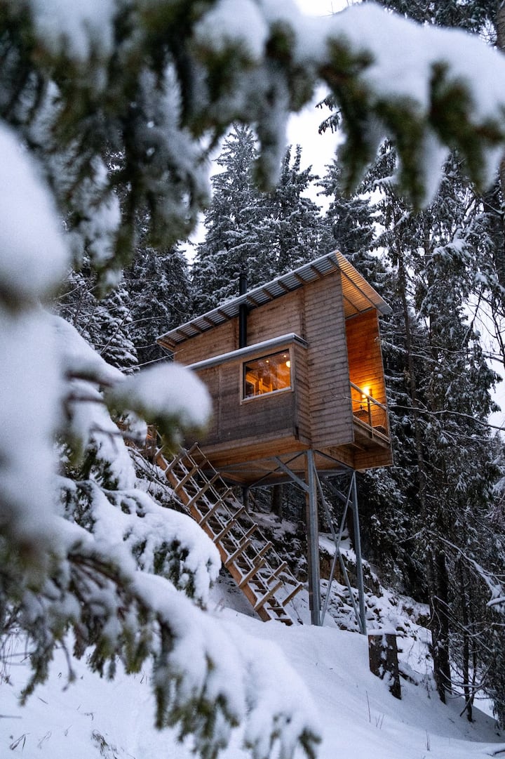 Dom na strome v lokalite Eidsvoll, Nórsko
