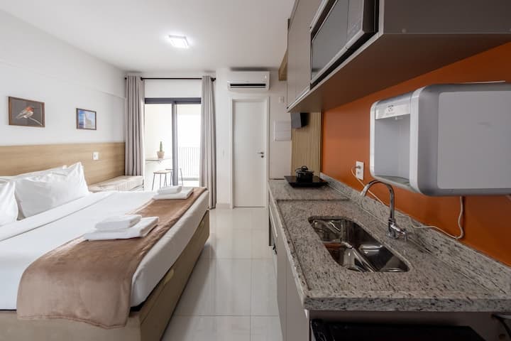 Objavte dokonalý pobyt v srdci mesta! Toto štúdio s rozlohou 22m ² bolo starostlivo naplánované tak, aby ponúklo ten najlepší hostiteľský zážitok, ktorý kombinuje pohodlie a praktickosť.