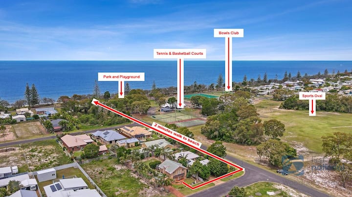 - Poloha: 4 Grevillea Court sa nachádza v srdci Woodgate Beach, len pár krokov od našej 16 km nedotknutej pláže, bujných prírodných rezervácií a očarujúcich miestnych atrakcií.