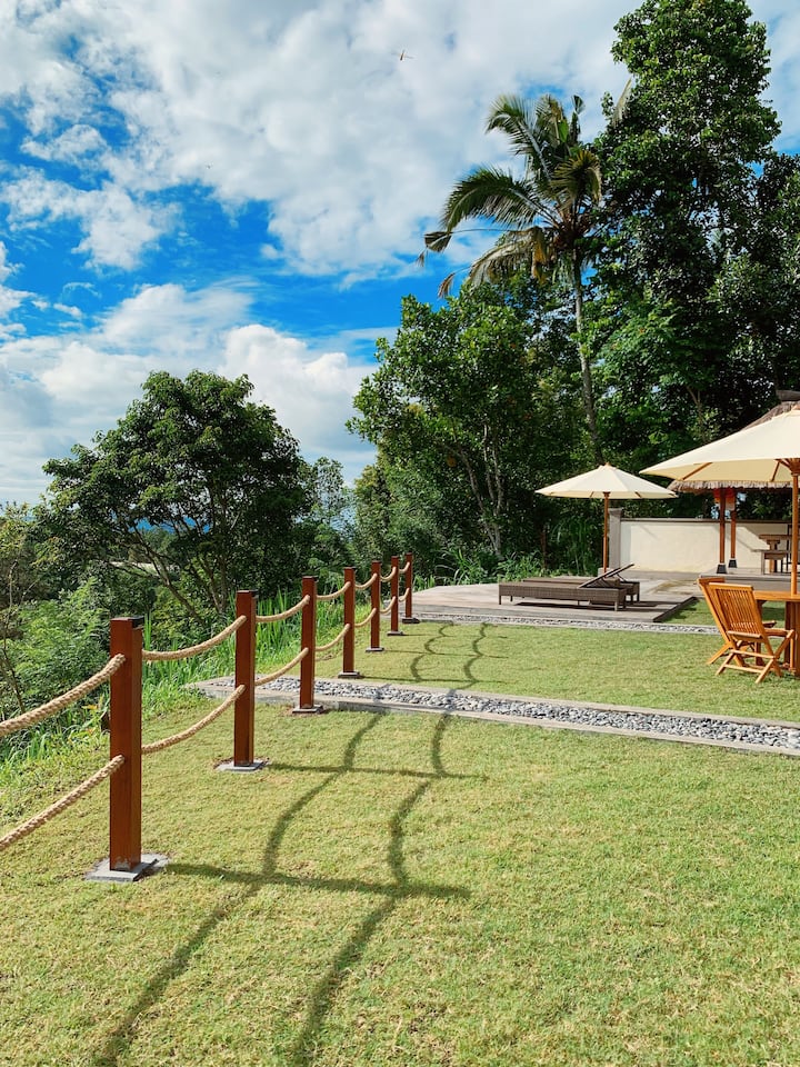 Besakih: drevená izba s výhľadom na hory
