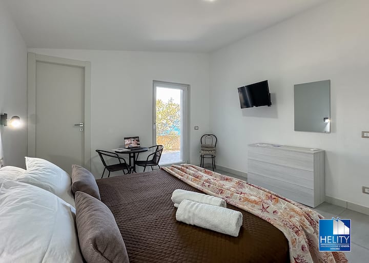 Vybavené manželskou posteľou s matracom z pamäťovej peny, šatníkom na uloženie oblečenia, dvoma nočnými stolíkmi, relaxačným priestorom pozostávajúcim zo stola a stoličiek pre dvoch, 32-palcovou inteligentnou televíziou so službou Netflix a Amazon Prime Video v cene a rôznym vybavením.