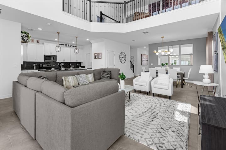 Vitajte v našom úžasnom novostavbe, ktorý sa nachádza v prestížnom rezorte Champions Gate v Davenporte na Floride. Toto priestranné Airbnb s 5 spálňami a 2 kúpeľňami ponúka dokonalú kombináciu luxusu a pohodlia, čo z neho robí ideálnu voľbu pre rodiny, skupiny a každého, kto hľadá nezabudnuteľný pobyt v blízkosti najlepších atrakcií Orlanda.