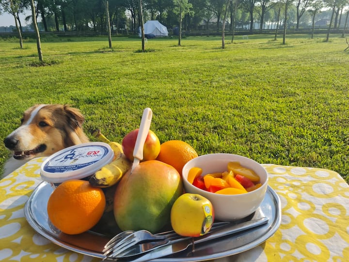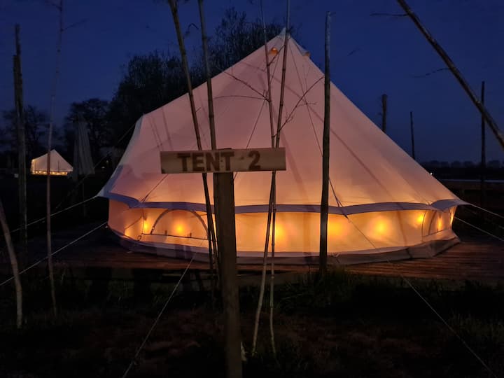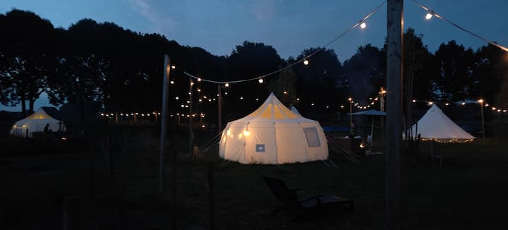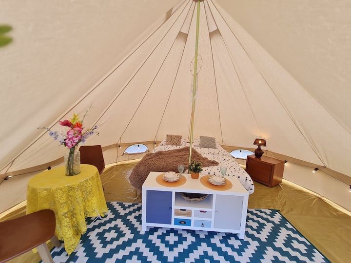 2. Idyllický zvonový stan, s sedacou súpravou a boxspring