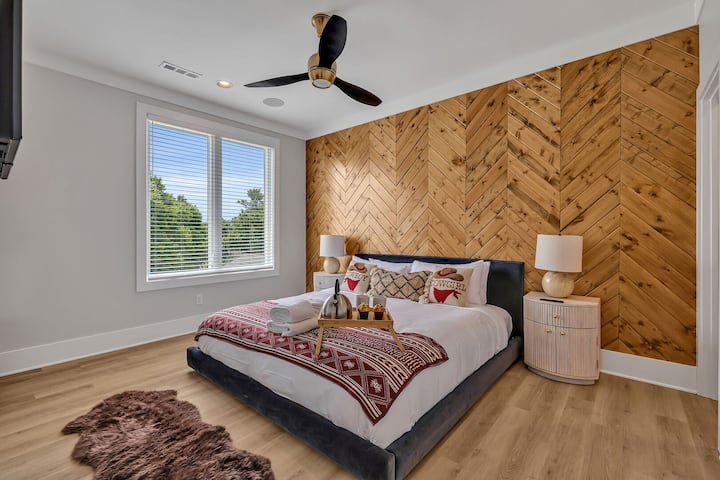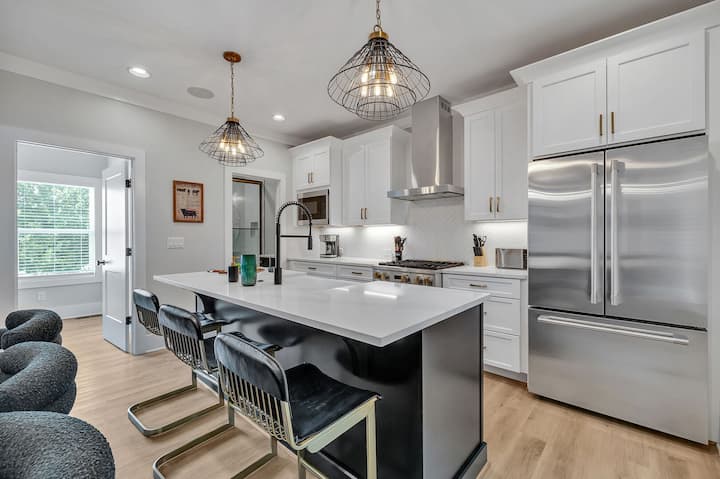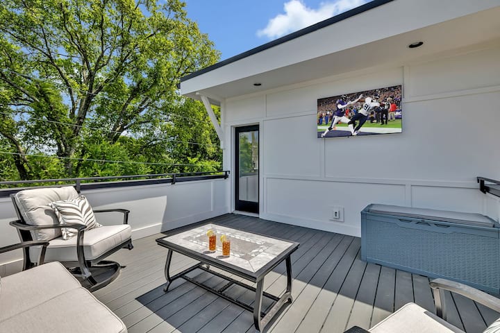Vitajte v Bass, ubytovaní v Nashville navrhnutom pre skvelé výhľady, jednoduché stretávanie a nepretržitú zábavu. Uvoľnite sa na strešnej terase s malebným výhľadom, posedením na streche a inteligentným televízorom – ideálne na drinky pri západe slnka alebo neskoré večerné sledovanie. Vnútri si oddýchnite v otvorenom obývacom priestore s mäkkými sedačkami, pripravte si v kuchyni jedlo pre celú skupinu a stretnite sa pri jedálenskom stole, kde sa budete smiať celú noc. Zachyťte atmosféru v Geodis Park, prejdite sa a dajte si neskoré raňajky v 12 South alebo choďte na Broadway za živou hudbou a legendárnym nočným životom.