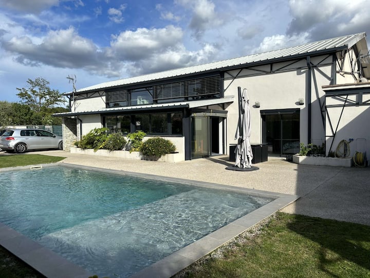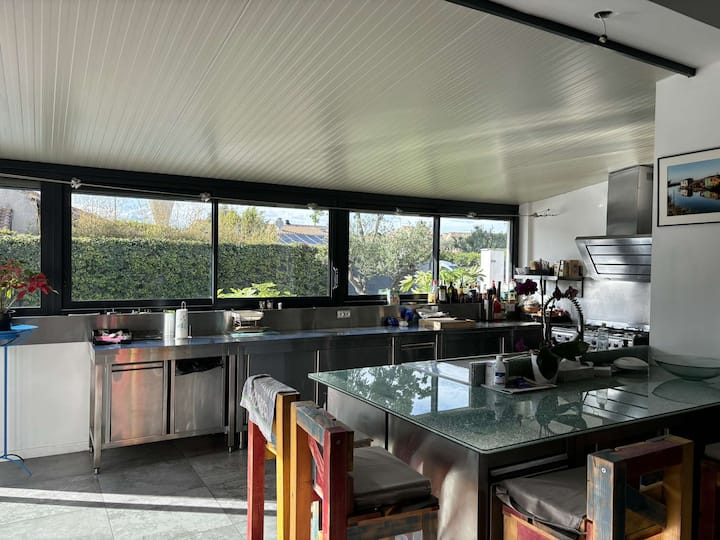 15 minút od Montpellier a stredomorských pláží, moderná vila zrekonštruovaná v Mudaison v starom poľnohospodárskom angarde vám umožní vychutnať si očarujúce prostredie v pokojnom prostredí na začiatku malého Camargue. Ideálne na dovolenku s rodinou alebo priateľmi, nohy vo vode.