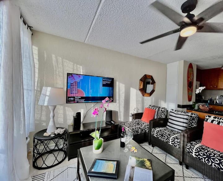 Jeden z najlepších a najlepšie situovaných kondomínií v malebnej, odľahlej komunite Puako Beach. Toto miesto plné módneho a pohodlného nábytku, umenia a elegancie je skvelým miestom na pobyt na Havaji. Jednotka má plne vybavenú kuchyňu a 2 kúpeľne. Luxusná posteľná bielizeň a uteráky. Nové klimatizačné jednotky s vysokou účinnosťou v obývacej izbe a hlavnej spálni. V každej izbe sú tiež stropné ventilátory. Jednotka má veľmi dobrú rýchlosť Wi-Fi a pripojenie so svojím sieťovým systémom (ARRIS / TP-Link Mesh 3pk) (DL 70,1 MB / UL/ UL 5,9 MB/S).