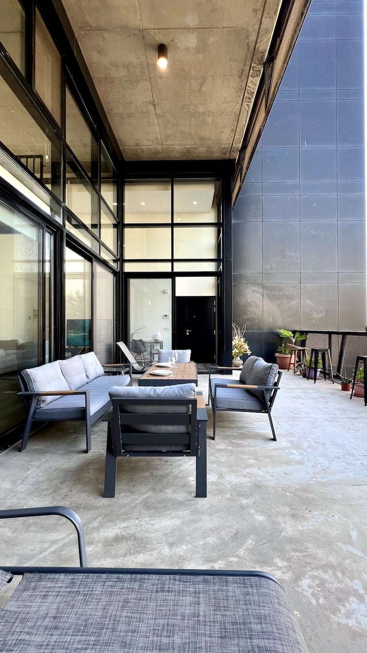 Byt v ikonických továrenských loftoch v Bejrúte s terasou