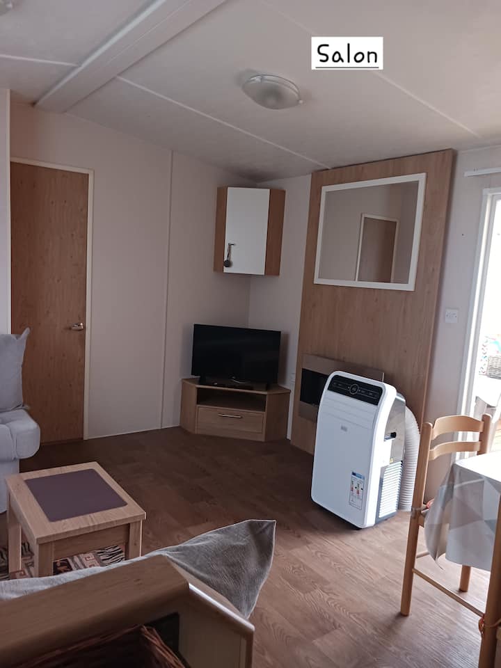 Priestranný mobilný dom pre 6 osôb v pokojnom kempingu