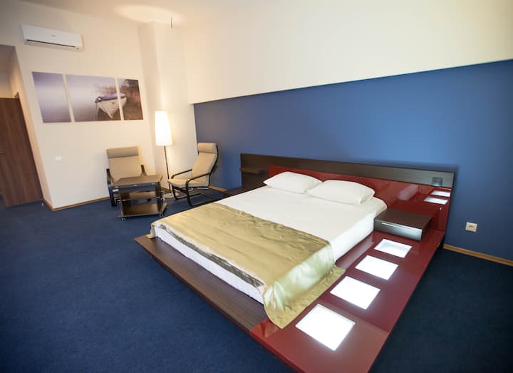 Výhodná poloha vzhľadom na dopravné spojenia s veľkými výrobnými zariadeniami. Hotel ponúka priestranné izby s moderným interiérom, kvalitným vybavením a inštaláciami. Izby sú vybavené plazmovou televíziou, klimatizáciou, telefónom, písacím stolom, chladničkou a všetkými potrebnými toaletnými potrebami.