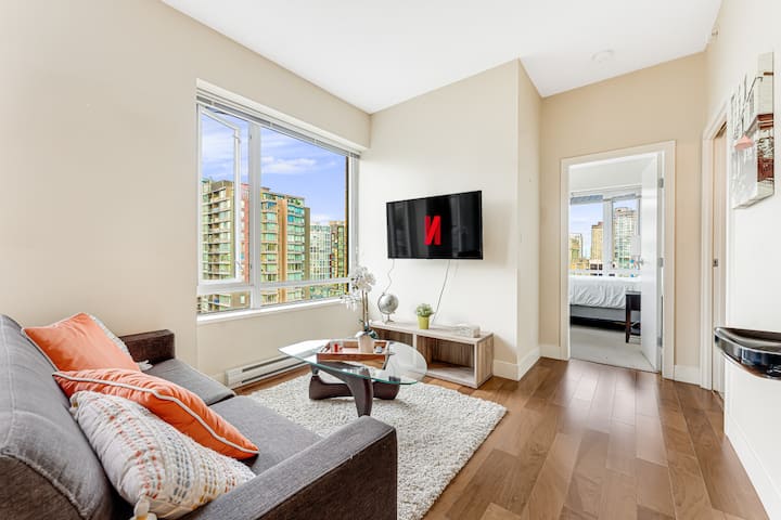 Štýlové 1-spálňové útočisko s panoramatickým výhľadom na mesto