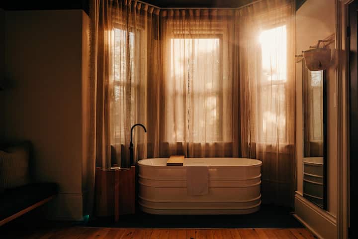 Manželská posteľ, hlboká vaňa v dizajnovom hoteli Collingwood