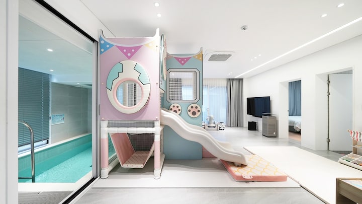 Je to Gapyeong Kids Pool Villa Pinetree, od vlakových hier až po zariadenia na detskú automobilovú dráhu, ako je zábavný park. Zabavte sa so svojimi deťmi a rodinou.