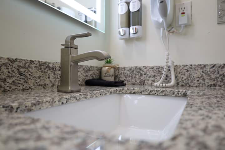 Motel v centre mesta, váš obľúbený pre moderné pohodlie a pohodlie. Naše izby v rodinnom vlastníctve s osobným nádychom sú navrhnuté tak, aby bol váš pobyt jednoduchý a relaxačný. Vychutnajte si vybavenie, ako je klimatizácia, chladnička, mikrovlnná rúra, kávovar K-cup, sušič vlasov, žehlička a doska a bezplatné Wi-Fi. Či už ste tu za prácou alebo za zábavou, náš špecializovaný tím je odhodlaný poskytovať vynikajúce služby a zabezpečiť nezabudnuteľný pobyt. Zažite pohodlie a starostlivosť na jednom mieste.