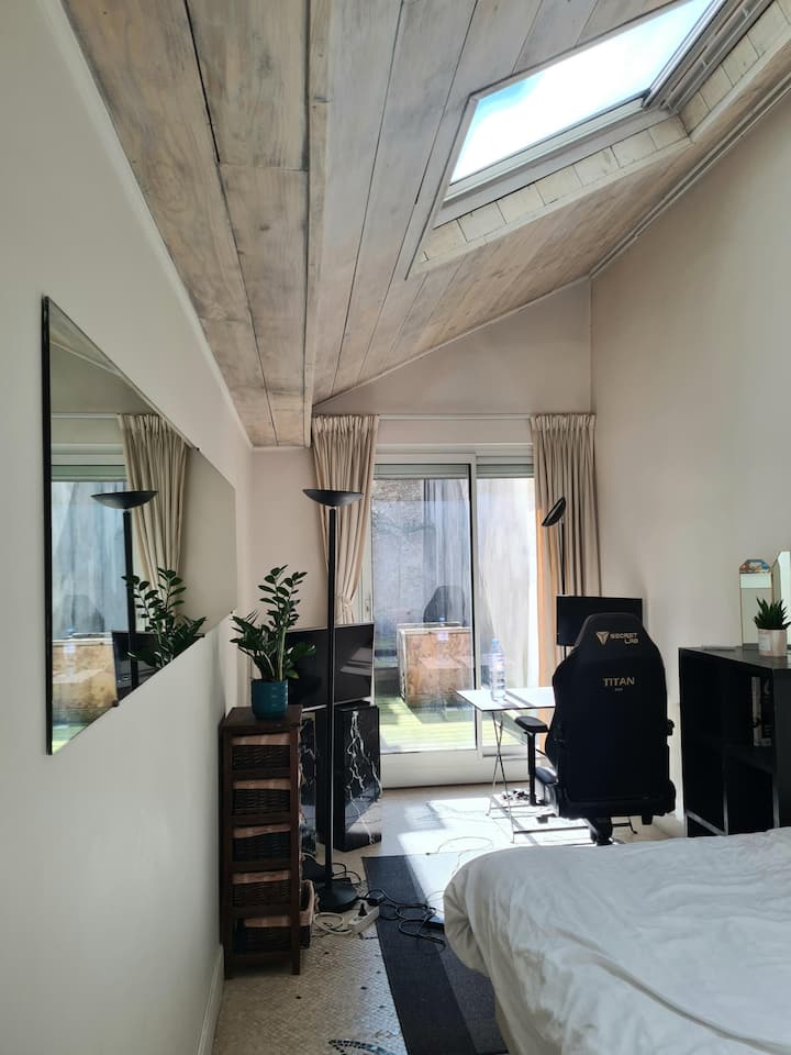 Izba s Wi-Fi, ktorá je vhodná na prácu.