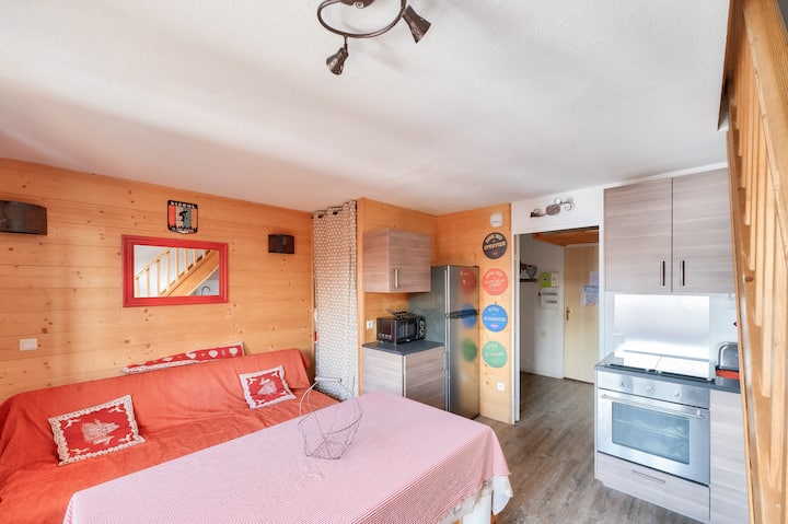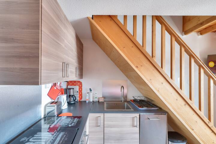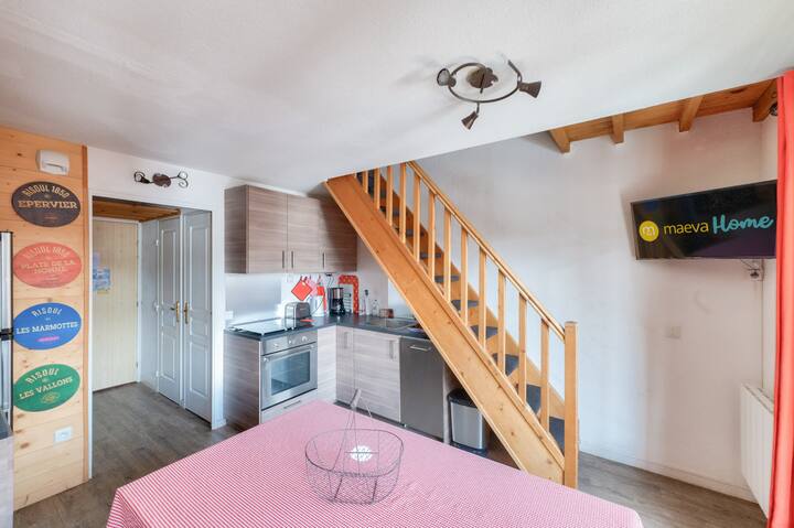 Váš dovolenkový prenájom zahŕňa: 1 obývaciu izbu, 1 zrub, 1 kuchyňu, 2 spálne, 2 kúpeľne, 1 samostatné WC, 1 balkón a 1 parkovacie miesto. Výhody prenájmu: Apartmán na úpätí svahov s balkónom orientovaným na juhovýchod, výhľadom na hory a v srdci dediny. Plocha : 50 m². Poloha : Poschodie ubytovania: 6. poschodie Prístup na pláž alebo svahy: Priamy prístup na svahy (noha svahov) Centrum mesta alebo dediny: Centrum dediny Vzdialenosť od svahov k moru: <100 m Pracovná vzdialenosť: medzi 100 m a 500 m Vzdialenosť aktivít: medzi 100 m a 500 m Počet úrovní bývania: 1 poschodie / Duplex Zloženie obývacej izby : Rozkladacia pohovka Obývacia izba: 1 Štandardná pohovka: Áno Miesta na sedenie na pohovke: 3 Strana jedla: Typ kuchyne: Semi-oppen Stôl v kuchyni: Áno stoličiek v kuchyni: 9 Zloženie izieb: Izba 1: Trundle bed: 2 Spálňa 2: Poschodové postele: 1 Prítomnosť medziposchodia: Áno Počet lôžok v medziposchodí: 0 Zrub 1: Prístup do priestoru zrubu: S dverami Poschodové postele: 1 Zloženie kúpeľne: Počet kúpeľní: 2 Počet samostatných toaliet: 1 Hlavná kúpeľňa: Typ kúpeľne: Vaňa so stĺpikom Bezplatná elektrická zásuvka v blízkosti zrkadla: Áno Háčiky na kabáty alebo nevykurovaná sušička uterákov: Áno Úložné priestory(okrem police pod zrkadlom a toaletného kúta top): Áno Sprchovací kút č. 2: Typ kúpeľne: Sprcha Stav kúpeľne: Priemerná bezplatná elektrická zásuvka v blízkosti zrkadla: Áno, háčik(háčik) alebo nevyhrievaná sušička uterákov: Áno Úložný priestor(y) (okrem police pod zrkadlom a toaletného kúta): Áno Elektrický sušič vlasov: Áno WC: Áno Exteriéry: Balkón: Áno Výhľad na balkón: Horská orientácia na balkón: South - East maeva Home Selection label: