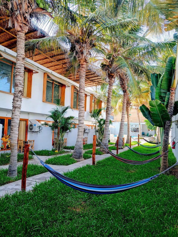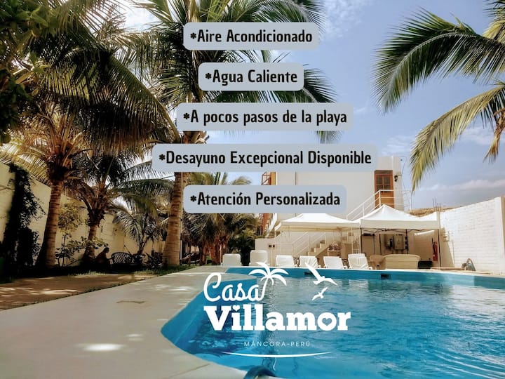 Dobrý deň, volám sa Pilar, som z Chiclaya, vyrastal som a pracoval som v Lime, kým mi Boh nedovolil prísť a investovať do Máncory, teraz po mnohých rokoch tvrdej práce, úsilia a odhodlania, môžem vám láskyplne ponúknuť priestor, ktorý je teraz a ktorý je pre nich otvorený, aby prišli a vychutnali si ich krásny dizajn , ticho, pokoj a ticho, Casa Villamor Máncora, čaká na vás a je k dispozícii s veľkou náklonnosťou.