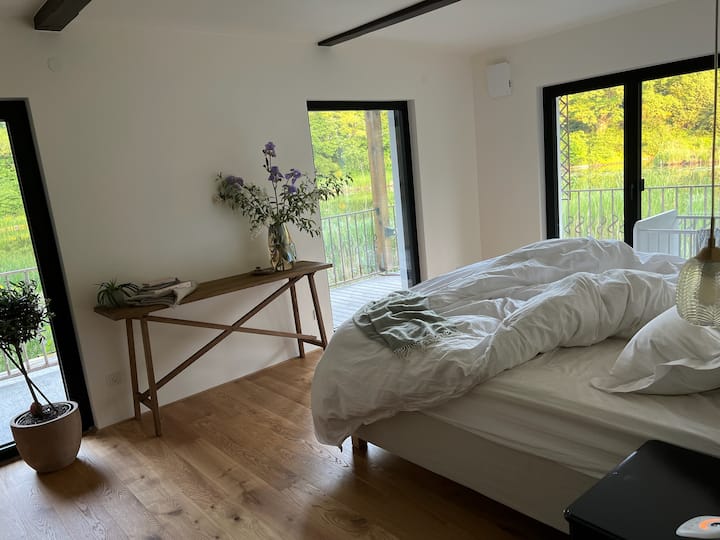 Veľký dom so súkromným jazerom v lese