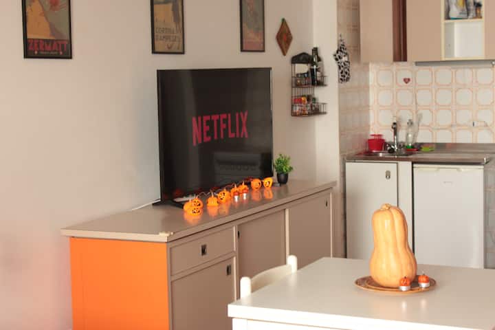 Izba s Wi-Fi, ktorá je vhodná na prácu.