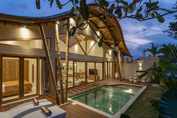 Predstavuje výrazný bambusový interiérový dizajn na streche a zároveň pridáva prírodné detaily, ktoré potešia oči. Vila sa môže pochváliť aj osviežujúcim súkromným vonkajším bazénom. Prenájom tejto vily je ideálnou voľbou pre rodiny alebo skupiny priateľov, ktorí si chcú užiť relaxačnú dovolenku na Bali.