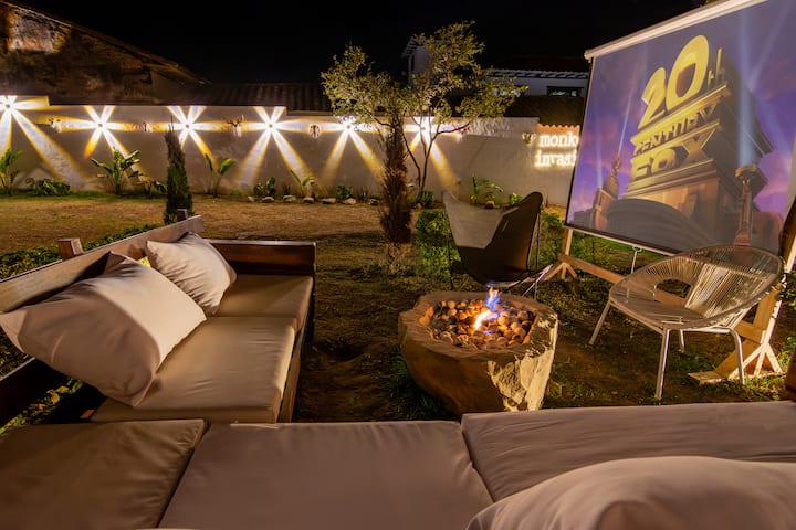 Krásna chata s ohniskom, kinom a kamennou vaňou
