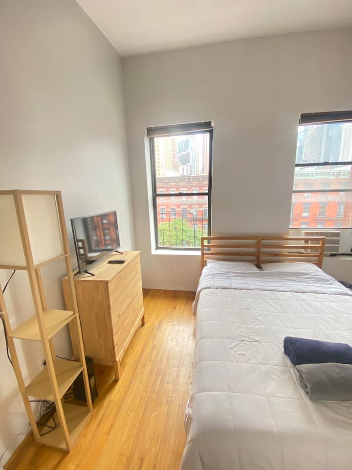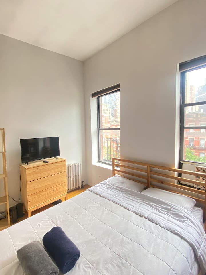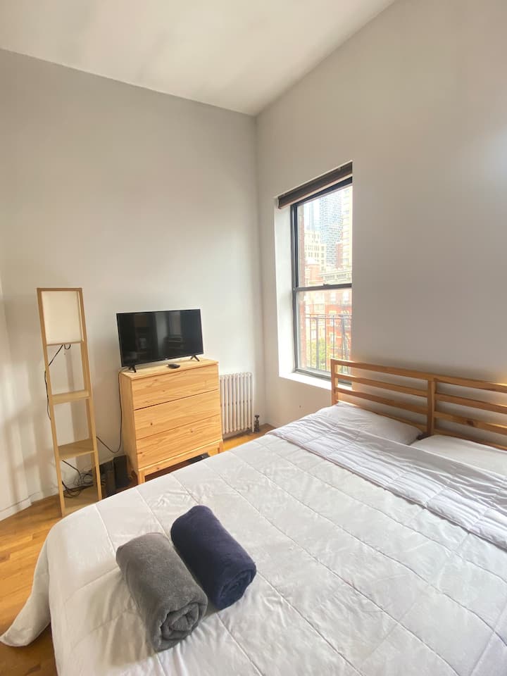 Spálňa s manželskou posteľou v Hell's Kitchen