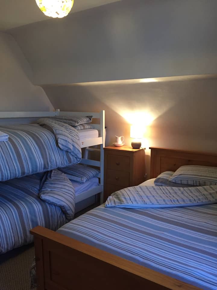 Rodinná izba. Manželská posteľ, poschodová posteľ. 20 min. wlk cty